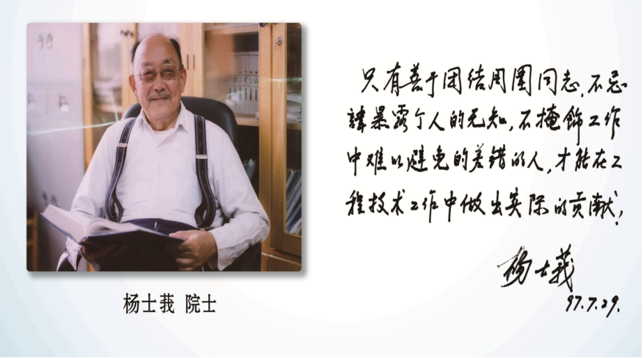杨士莪先生从青年时代起就把个人发展与国家富强紧密联系在一起,秉持科技报国理想,把为祖国富强、民族振兴贡献力量作为毕生追求。在海洋事业急需发展、海军建设急需人才的年代,只争朝夕、不辱使命,成为中国水声事业发展的建设者、倡导者和推动者,为中国水声事业的发展作出了重要贡献。
