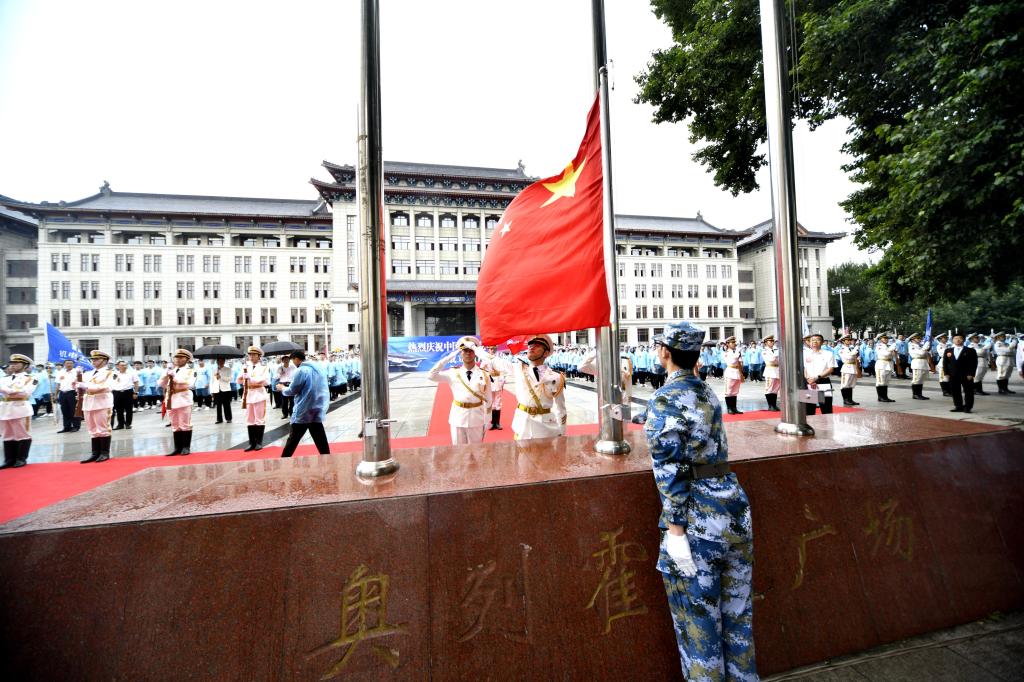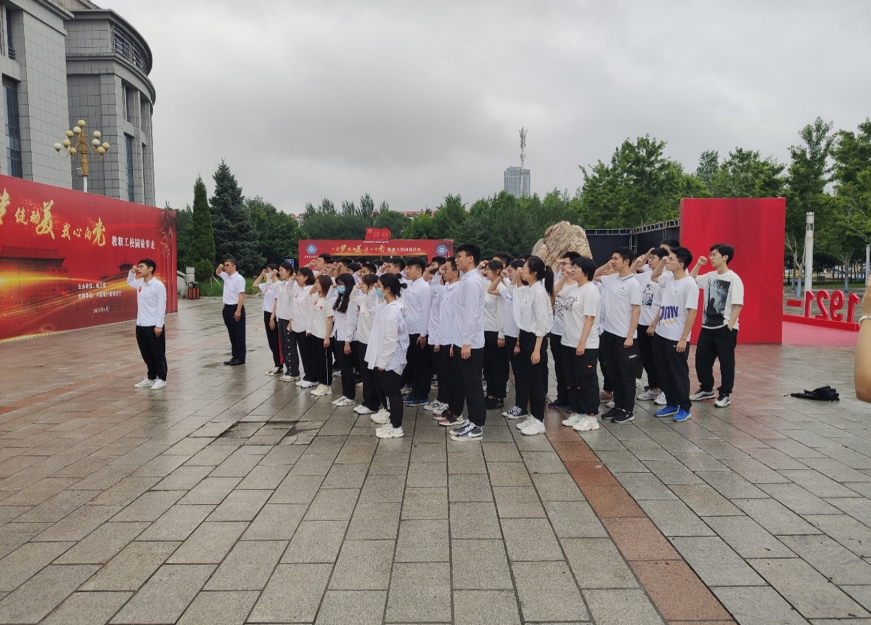 五星红旗在雄壮的国歌声中缓缓升起,全场师生行注目礼,高声齐唱国歌。全体党员重温入党誓词,铿锵有力、慷慨激昂的誓言,表达了工程人对中国共产党坚贞不渝的忠诚和为共产主义事业奋斗终生的决心。