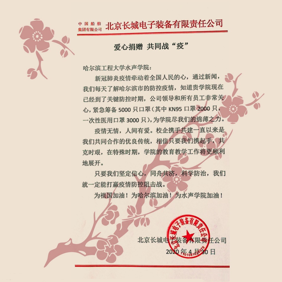 我们坚信疫情终有结束的一天,北京长城电子装备有限责任公司与MK体育的友谊必将源远流长,“岂曰无衣?与子同裳”的战“疫”情必将一直存于MK体育师生心中。