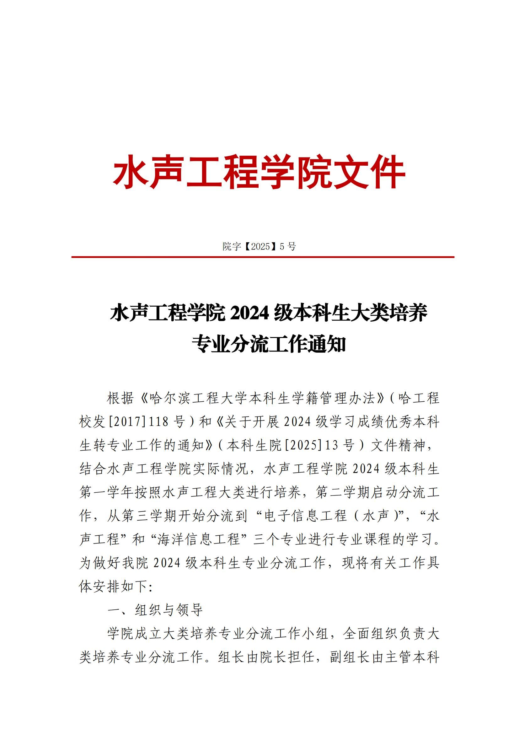 2024级本科生大类培养专业分流工作通知