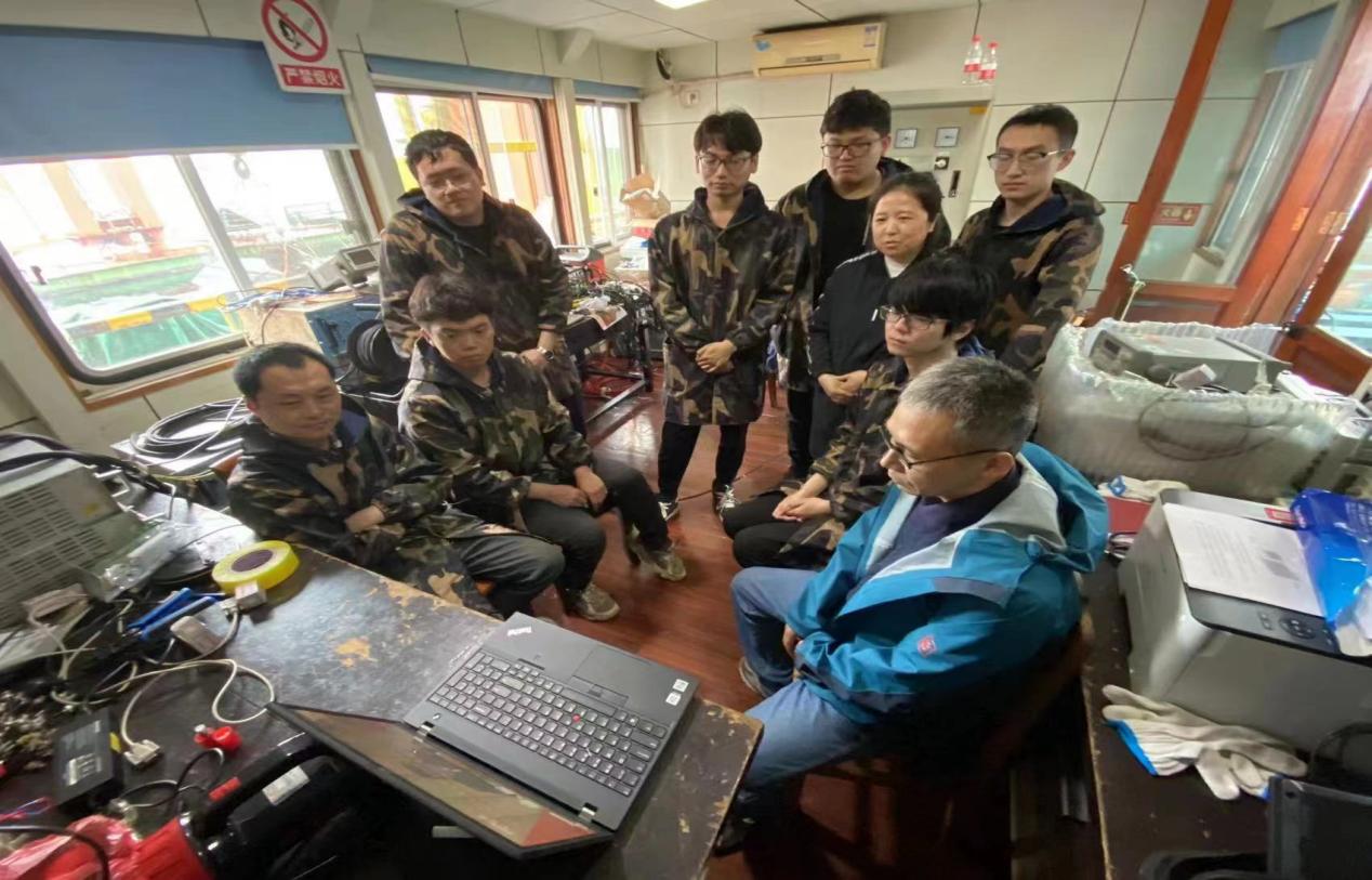 水下振动噪声党支部教师及员工在千岛湖试验船上观看大会盛况