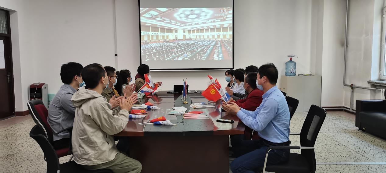 第24届“黑龙江省青年五四奖章集体”——水声通信与定位技术科技创新团队部分青年教师集中观看大会盛况