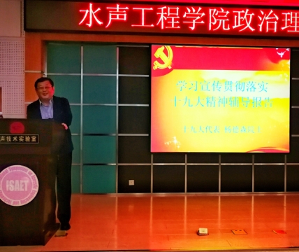 11月9日,十九大代表、中国工程院院士、杨德森教授在水声楼学术报告厅为教师们做了学习宣传贯彻落实党的十九大精神辅导报告。